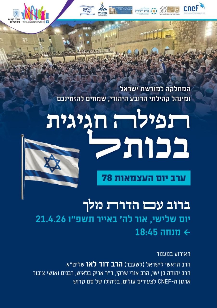 תפילה חגיגית בליל יום העצמאות תשפ"ו ברחבת הכותל